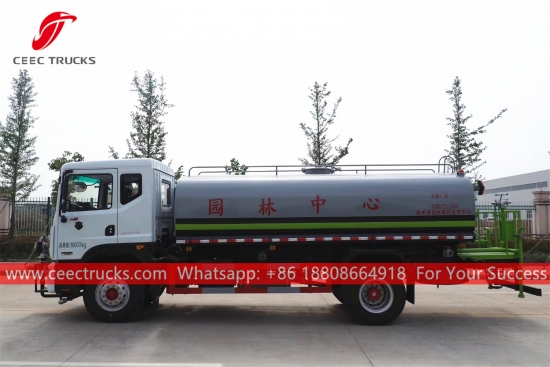 Camión rociador de agua DONGFENG de 11.000 L, chasis DONGFENG 4x2 con volante a la izquierda, caja de cambios manual de 6 cambios, motor diésel CUMMINS de 180 HP, bomba de agua de marca famosa, con boquilla rociadora delantera, media y trasera opcional. Toda la pintura y los logotipos dependen del requisito.
