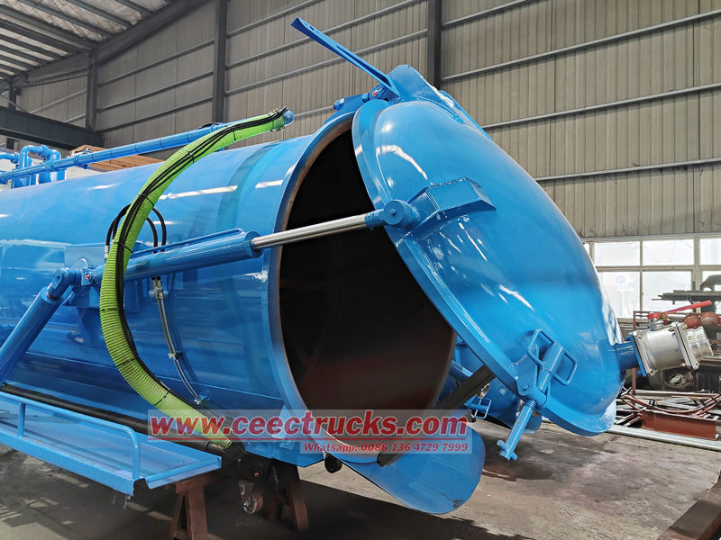 ➤ La unidad cisterna de vacío montada sobre camión de 12.000 litros ofrece una fuerte succión, un excelente sellado, una descarga completa, una estructura compacta y un fácil mantenimiento.