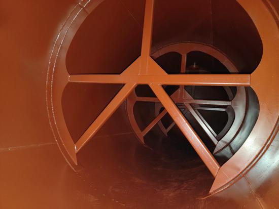 ● La boca de descarga cuenta con una estructura de apertura rápida de gran diámetro, lo que permite una descarga veloz y evita obstrucciones residuales. Un sistema de elevación hidráulica permite inclinar el tanque para la descarga por gravedad, mejorando aún más la eficiencia de descarga.