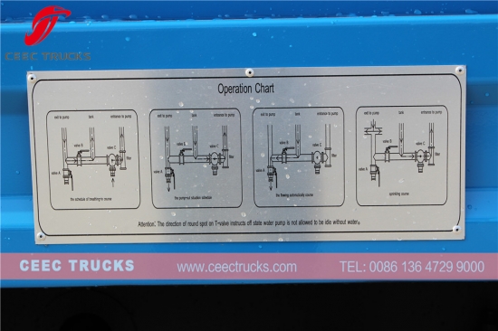 El camión cisterna ISUZU se compone principalmente de chasis, tanques, bombas, válvulas y tuberías de agua, rociadores y otras piezas. El camión cisterna está hecho de chapa de acero al carbono de alta calidad.