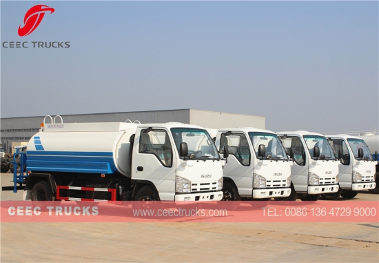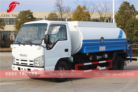 Mini cenador de agua de la marca ISUZU de alta calidad, el más vendido en los países de Asia, que utiliza un chasis de distancia entre ejes de tipo pequeño de 3360 mm, motor japonés de 98 HP con tecnología ISUZU, caja de cambios manual MSB de 5 cambios, camión cisterna de acero al carbono de alta resistencia 5CBM, pintura antioxidante