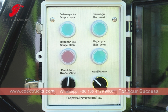 ** Se pueden equipar alarma trasera y cámara. ** Se puede elegir la válvula múltiple de Italia. ** Se pueden elegir contenedores de 240 L (contenedor simple o doble) o estándar de 660 L, 1100 L con elevador de contenedores. |