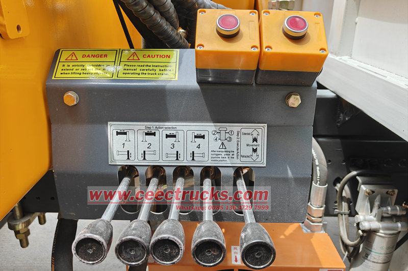 ● Funcionamiento del brazo telescópico: La pluma de 4 secciones se extiende sección por sección mediante un cilindro hidráulico, con un radio de operación extendido de hasta 16 metros. El extremo de la pluma está equipado con una polea y un cable de acero para elevar objetos pesados.