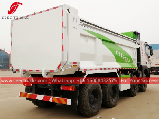 Camión volquete volquete de 60 toneladas, chasis IVECO 8x4 LHD, Caja de cambios manual RÁPIDA de 12 cambios, famosa marca china SFH diésel 390HP Motor, volquete de acero de alta resistencia, con sistema hidráulico HYVA o doméstico. elevador opcional. Toda la pintura y los logotipos dependen del requisito.