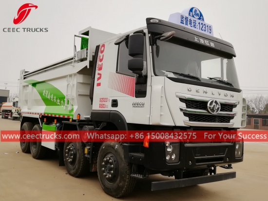 Camión volquete IVECO Genylon 8x4 (también llamado pesado camión volquete de servicio, camión volquete, 60 toneladas camiones volquete, camión volquete de elevación frontal Hyva, camión volquete, camión volquete de arena y roca de construcción, camión volquete, camión volquete, volquete volquete, volquete y camión, camión volquete) está diseñado para los mercados nacionales y extranjeros de camiones pesados de alta gama. En orden para prevalecer sobre sus rivales en la competencia global, componentes clave de Los camiones volquete están diseñados en estrecha colaboración con los mejores proveedores. en el mundo.