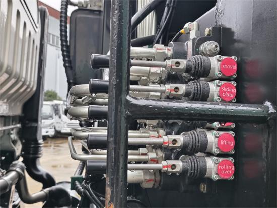 El camión de basura incorpora una válvula de control electrohidráulica y un sistema de control programable PLC, que aprovechan integralmente las ventajas del control eléctrico e hidráulico. Mediante el control combinado electrohidráulico, se resuelve eficazmente el problema de la interfaz entre el sistema hidráulico y el eléctrico, mejorando así la fiabilidad de uso.