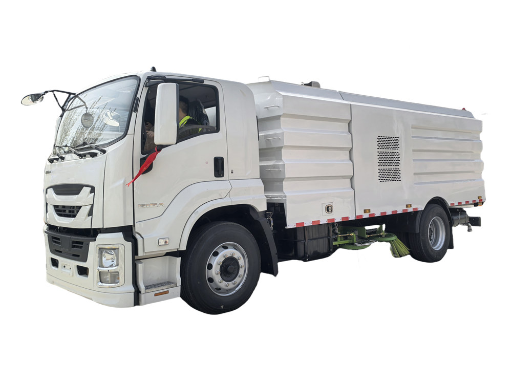 Camión barredor de calles Isuzu 4X GIGA de 10 cbmEs un vehículo especial diseñado para la limpieza de vías urbanas. Se utiliza principalmente para barrer basura, polvo, hojas caídas y otros residuos para mantener las calles limpias.