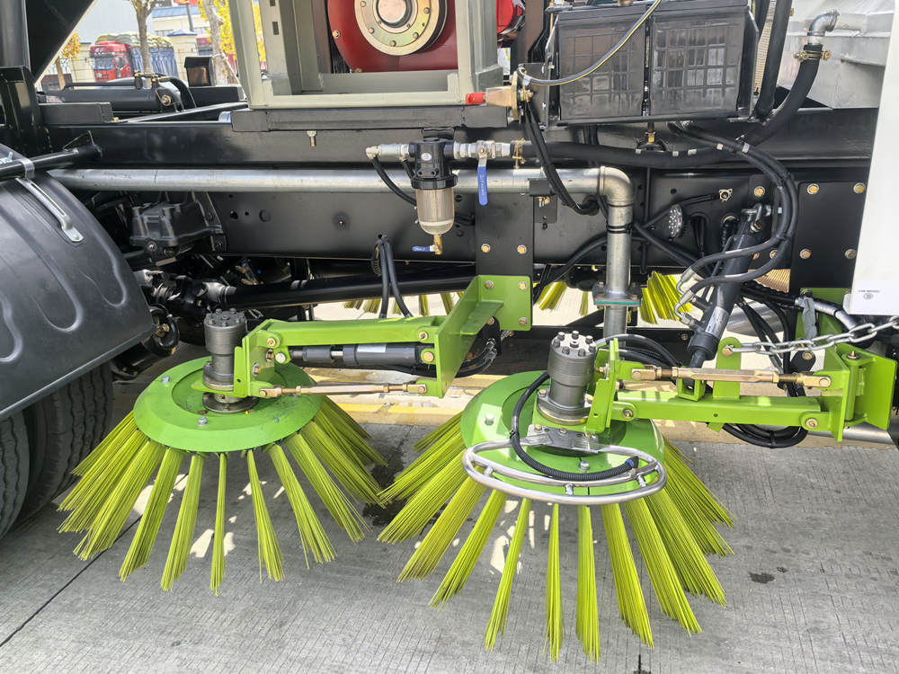 a-†El camión de limpieza vial Isuzu utiliza cerdas de nailon de alta resistencia. Los cepillos principal y auxiliar trabajan en conjunto para ajustar la velocidad y la presión sobre el suelo, adaptándose a las diferentes condiciones de la carretera. El ángulo del cepillo se ajusta automáticamente para garantizar que no haya ángulos muertos durante la limpieza. Además, cuenta con una función automática para evitar obstáculos y se levanta rápidamente al encontrarlos.