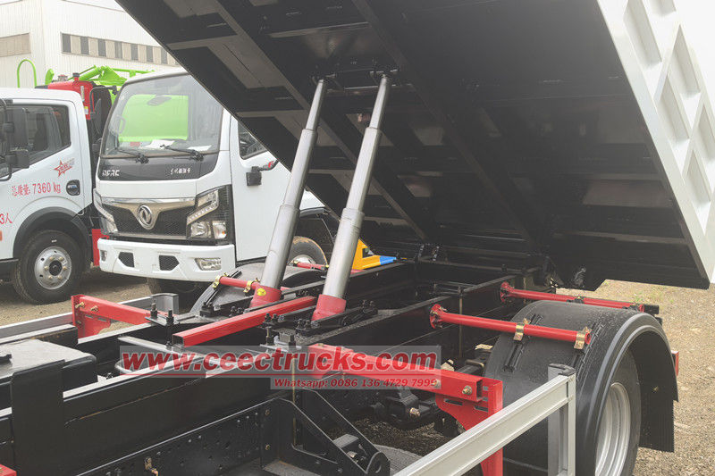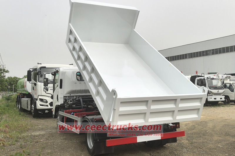 ◆ Descarga eficiente:La característica más notable del camión volquete Isuzu ELF es que la carrocería del vehículo puede inclinarse hacia atrás o hacia los lados en un ángulo establecido a través del sistema de elevación hidráulico, y la carga se puede descargar de manera rápida y limpia, lo que acorta en gran medida el tiempo de descarga y mejora la eficiencia del transporte.