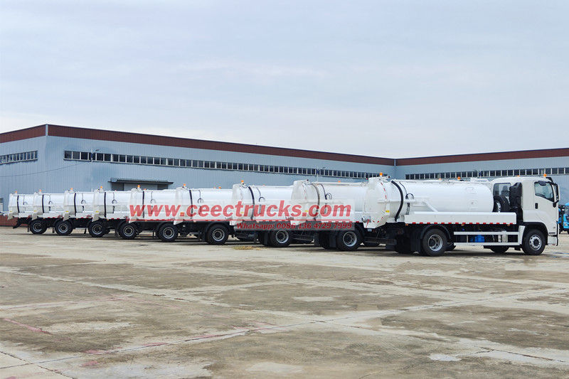 Durante el funcionamiento, el camión se acopla a la fosa séptica, alcantarilla o tubería obstruida. La bomba de vacío se conecta al contenedor de residuos mediante una manguera de succión. Al activarse, crea rápidamente un alto vacío dentro del tanque, aprovechando la diferencia de presión para aspirar con fuerza residuos líquidos o semisólidos, como heces, aguas residuales y lodos, hacia el interior del tanque.