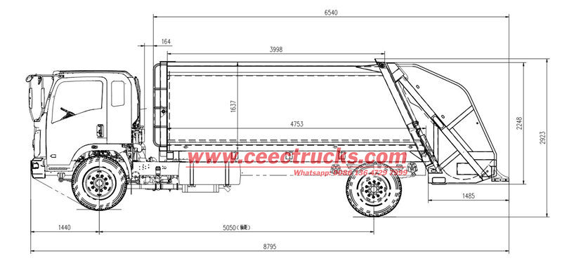 ➤ El núcleo de la caja de carga trasera personalizada de 10 m³ para residuos es una estructura totalmente sellada, soldada con placas de acero de alta resistencia y resistentes al desgaste. Su robusta estructura, resistente a la corrosión, permite operaciones de carga y compactación prolongadas.