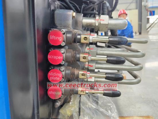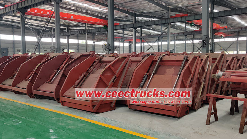 ● Estructura: Instalado dentro de la caja de carga y accionado por un cilindro hidráulico, se mueve hacia adelante y hacia atrás a lo largo de una corredera en la parte inferior.