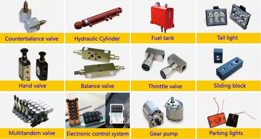 ♦ Componentes: Incluye una bomba hidráulica, una válvula de control direccional multidireccional, cilindros hidráulicos, un depósito de aceite y tuberías.