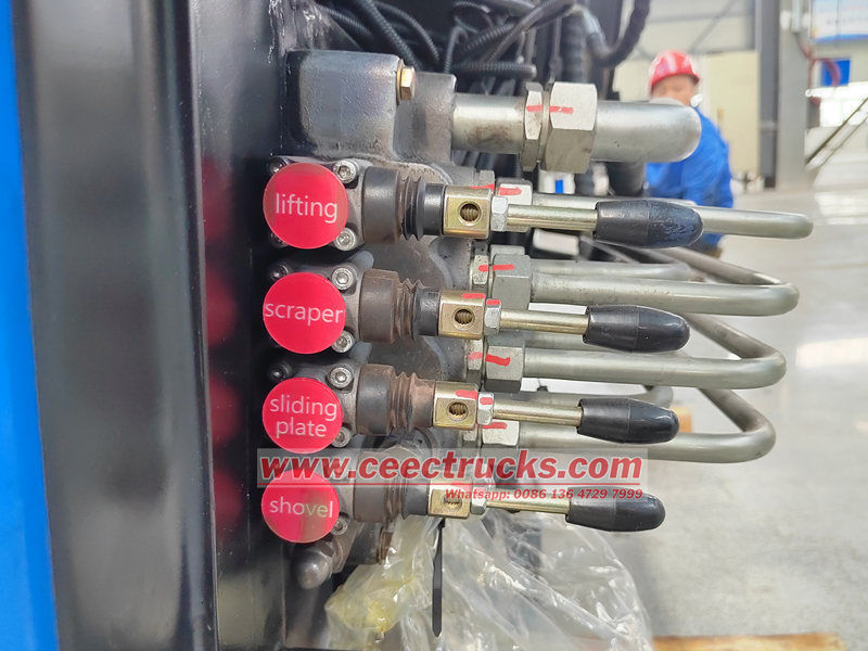 Una válvula de control multidireccional coordina el funcionamiento de cada cilindro, automatizando el proceso de recogida, compresión y descarga.