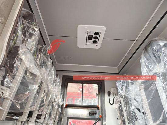 Panel de operación de la bomba de agua en inglés, el guardabarros debe ser negro, con luz de alarma, escalera desmontable, caja de equipo trasera de la carrocería bajo la dirección de la inclinación hacia arriba de aproximadamente 45 grados, todas las interfaces del vehículo y los accesorios son británicos, con un rollo de 30 m de manguera de alta presión negra |