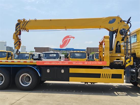 This Howo flatbed tow truck with 8T crane is a versatile and well-designed special truck. It is equipped with a diesel engine of Chinese brand Yuchai Engine, with a strong power of 260HP, which can meet various work needs. The new M9 luxury cab can accommodate three people and is equipped with air conditioning, providing a comfortable driving environment for drivers and operators. The crane is a telescopic boom with a maximum lifting capacity of 8000kg, 360° full rotation, and a maximum lifting height of 16.5m. The crane designed by CEEC factory weighs 1850kg and has an installation space of 1350mm, which is light and space-constrained. At the same time, the crane truck combines the flatbed tow system, with a load capacity of 12-15tons, providing more possibilities for engineering operations. The control panel can be selected in English or other languages, which is convenient for users with different needs. Howo cargo crane truck also provides a variety of optional configurations, such as folding arm boom, hydraulic dump box, customized box thickness and height according to needs, and optional remote control box.