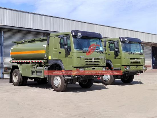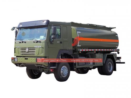 El Hola Fuera de la carretera 1 0 El camión cisterna de combustible móvil de 000L es el especial de minería re combustible eng tanque camión . El Camión cisterna de combustible Howo usando 4X 4 conducir sistema y él ' s equipado con un WP12S400E201 modelo 6 Motor diésel turboalimentado con intercooler, refrigerado por agua y de 2 cilindros en línea con una potencia máxima de 400 CV La caja de cambios es 10 velocidades frontales y 2 velocidad trasera, equipada con un embrague de diafragma reforzado. El camión cisterna de combustible Howo Tiene gran potencia y buen control, adecuado para diversas condiciones de la carretera. Trabajos de transporte de petróleo.
