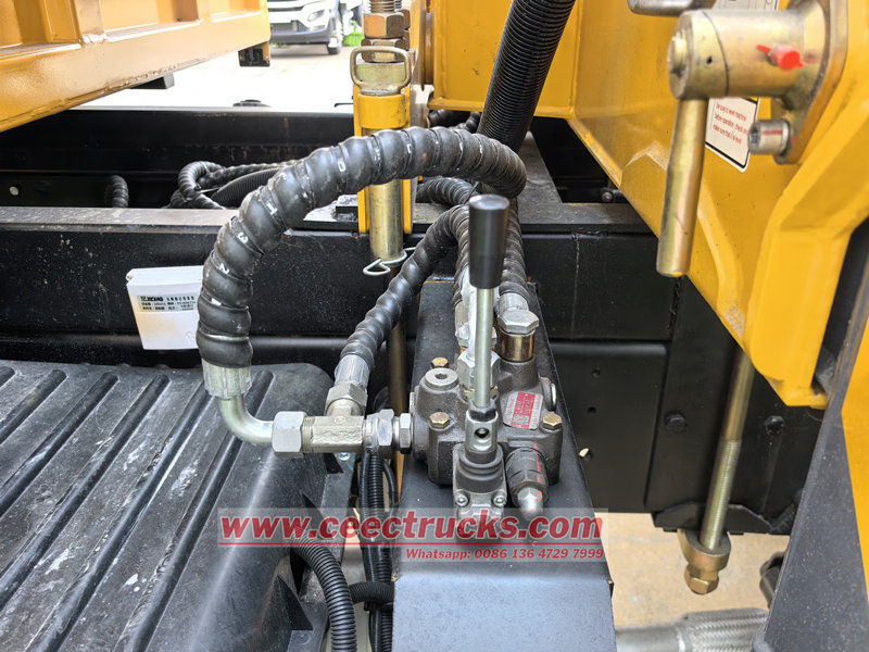 La grúa HOWO de un solo eje y 4 toneladas montada en camión es ideal para aplicaciones en construcción, logística, infraestructura, minería y otros sectores. El vehículo está modificado sobre un chasis HOWO con una distancia entre ejes de 4600 mm. Está equipada con un motor WEICHAI WP10.300E22 de 300 HP y una caja de cambios HW13710 de 10 velocidades. La parte superior es una caja de carga de 3800 × 2400 × 450 mm y una grúa XCMG SQ4SK2Q, capaz de levantar 4 toneladas. La grúa se opera mediante palancas hidráulicas manuales a ambos lados para controlar la retracción y extensión de los estabilizadores, así como la retracción y rotación de la grúa.