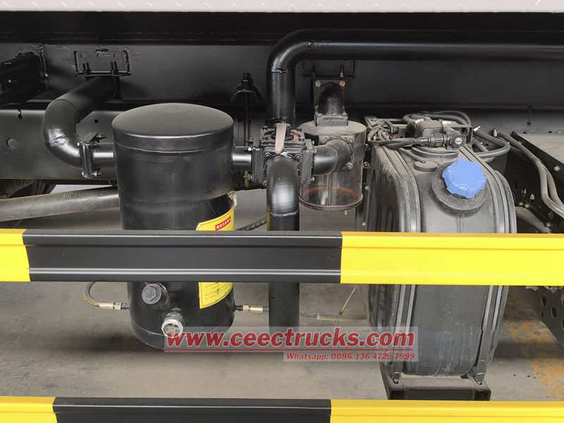 ● Cuando el tanque esté lleno de suciedad, apague la bomba de vacío, desconecte la manguera y el vehículo podrá conducir hasta el lugar de descarga designado para descargar la suciedad a través de la salida de aguas residuales en la parte trasera del tanque.