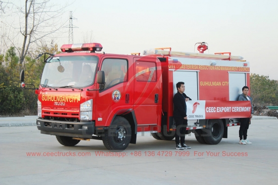 Camión de bomberos acuático ISUZU ELF (también llamado Vehículo de extinción de incendios ISUZU, camión de bomberos acuático ISUZU NPR, camión de bomberos ISUZU 4×2, rescate de incendios ISUZU camión, ISUZU fabricante de camiones de bomberos) es aplica para el cuerpo de bomberos de ciudades grandes y medianas, petroquímica empresas, aeropuertos y puertos, etc., para apagar el fuego de petróleo y otras sustancias en nuestra gran área.