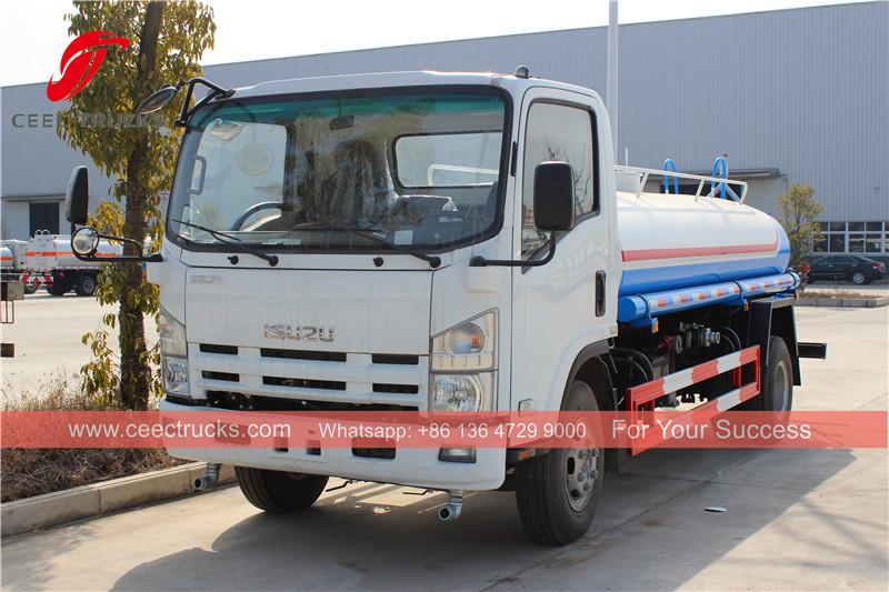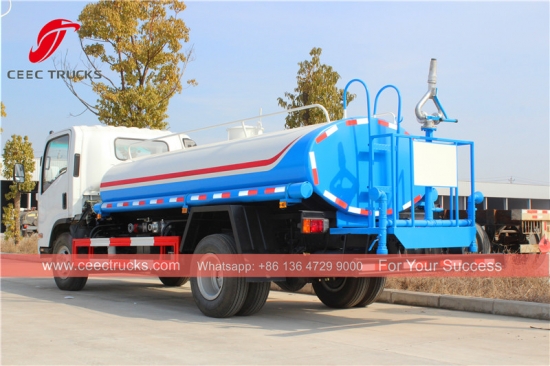 Camión cisterna de agua ISUZU 7CBM (también llamado Cisterna de agua, camión rociador de agua, camión cisterna de agua, camión cisterna de agua, camión cisterna de agua portátil) se utiliza para la carretera lavado de agua, reverdecimiento de árboles y césped, limpieza de edificios altos, construcción de carreteras y fábricas. Tiene las funciones de lavar, regar, transportar agua y combatir incendios.