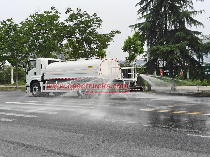 Características: El camión cisterna de agua potable Isuzu FTR es un todoterreno en operaciones urbanas. Cuenta con una amplia gama de funciones y un solo vehículo. No solo limpia la carretera vigorosamente como un limpiador diligente para que luzca como nueva, sino que también se transforma en un jardinero cuidadoso que riega meticulosamente la vegetación. También sirve como purificador de aire para reducir eficazmente el polvo. Incluso en emergencias, puede participar en la extinción de incendios como auxiliar.