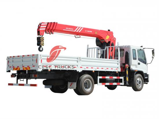 Customized to equipped with remote control deviceEl camión grúa de carga Isuzu FTR es un camión potente y bien diseñado. Está equipado con un motor diésel de la marca ISUZU con una potente potencia de 205 HP, que puede satisfacer diversas necesidades de trabajo. La cabina tiene capacidad para tres personas y está equipada con aire acondicionado, lo que proporciona un entorno de conducción cómodo para el conductor. La parte superior del camión grúa de carga Isuzu FTR de 6.3 toneladas está equipada con una grúa de pluma telescópica con una capacidad máxima de elevación de 6300 kg y una rotación completa de 360°. La grúa pesa 950 kg y tiene un espacio de instalación de 850 mm. El panel de control se puede seleccionar en inglés u otros idiomas, lo que es conveniente para usuarios con diferentes necesidades. El camión grúa de carga Isuzu FTR también ofrece una variedad de configuraciones opcionales, como grúa de pluma telescópica, caja de descarga hidráulica, grosor y altura de caja personalizados según las necesidades, y caja de control remoto opcional.