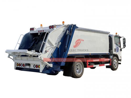 Rear tilting device for 240L and 1100L metal binsEl 6 CBM rear loader truck is built on the Isuzu light duty chassis, equipped with an Isuzu 4HK1 diesel engine with a maximum power of 190HP and a peak torque of 560Nm, matched with a 6-speed manual transmission MLD. It is powerful and stable, and can challenge all kinds of difficult roads. The garbage compactor bin is made of high-tensile steel, and key parts such as the floor (4mm) and side panels (3mm) are reinforced by laser/plasma cutting and automated welding processes to ensure the durability of the body. With its efficient compaction, strong power, modular design and strict manufacturing standards of the CEEC trucks factory, the Isuzu 6 CBM rear loader truck has become an ideal solution for urban garbage disposal around the world.