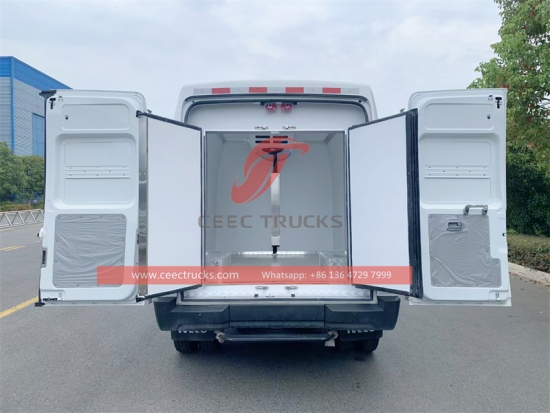 Estándar: Pisos de aleación de aluminio, puertas traseras. Opcional: 1. Elevador hidráulico y Sistema de control de carga. 2. Puertas laterales, escalones laterales y escaleras. 3. Control de área de temperatura diferente. 4. Diseño de rodillo de piso personalizado para trabajo conveniente. |