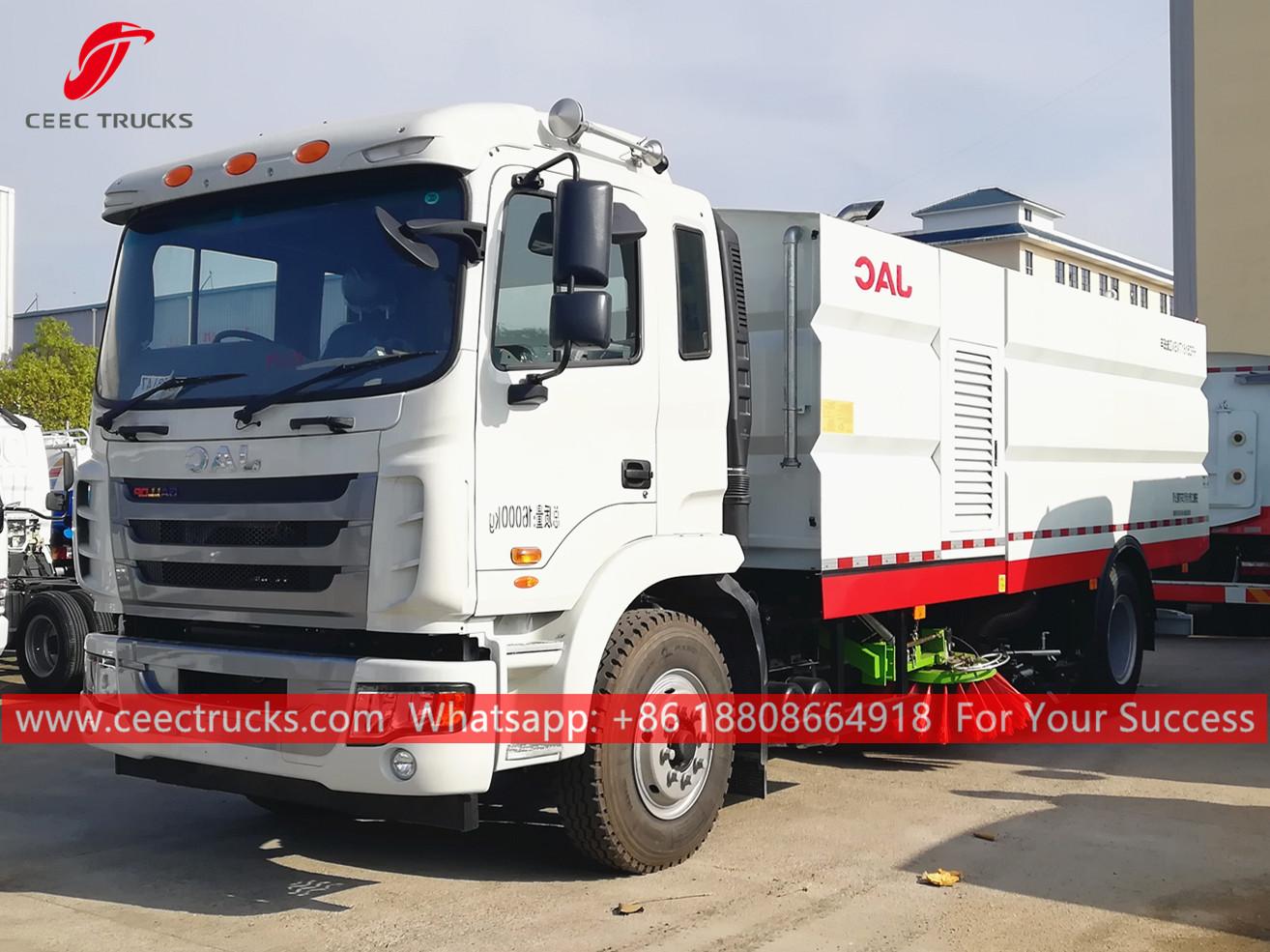 Camión barredor y lavado de carreteras JAC (también llamado JAC barredora con sistema de lavado, camión hidráulico para barrido y lavado de calles, camión barredor aspirador con lavadora, Camión limpiador de carreteras JAC) está diseñado Para barrido diario en comunidad, ciudad, carretera, sitio de construcción, Carreteras elevadas, puentes, plazas, aeropuertos y muelles con asfalto. Superficie de la carretera de hormigón y cemento.
