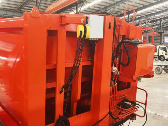 Volume optional 5-20cbmLos kits de carrocería superior del compactador de basura de carga trasera son componentes clave del vehículo. La interfaz entre el contenedor de basura y el compactador está equipada con una tira de sellado de goma especial, comprimida y sellada con un dispositivo de bloqueo hidráulico para un sellado excelente. El tanque de agua especialmente diseñado en la parte inferior de los kits de carrocería superior del compactador de basura de carga trasera proporciona doble protección, evitando eficazmente las fugas de aguas residuales y eliminando la contaminación secundaria.