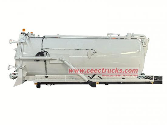 ● La carrocería del camión cisterna para aguas residuales es altamente eficiente, segura, ecológica y práctica, lo que hace que se utilice ampliamente en la limpieza de redes de drenaje municipales, la recogida de residuos industriales y el tratamiento respetuoso con el medio ambiente.