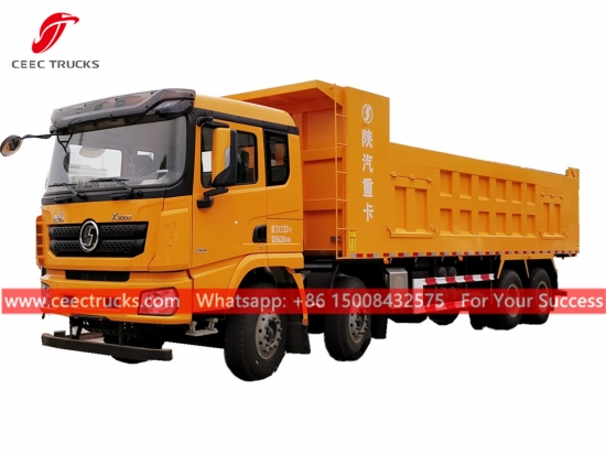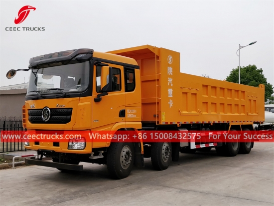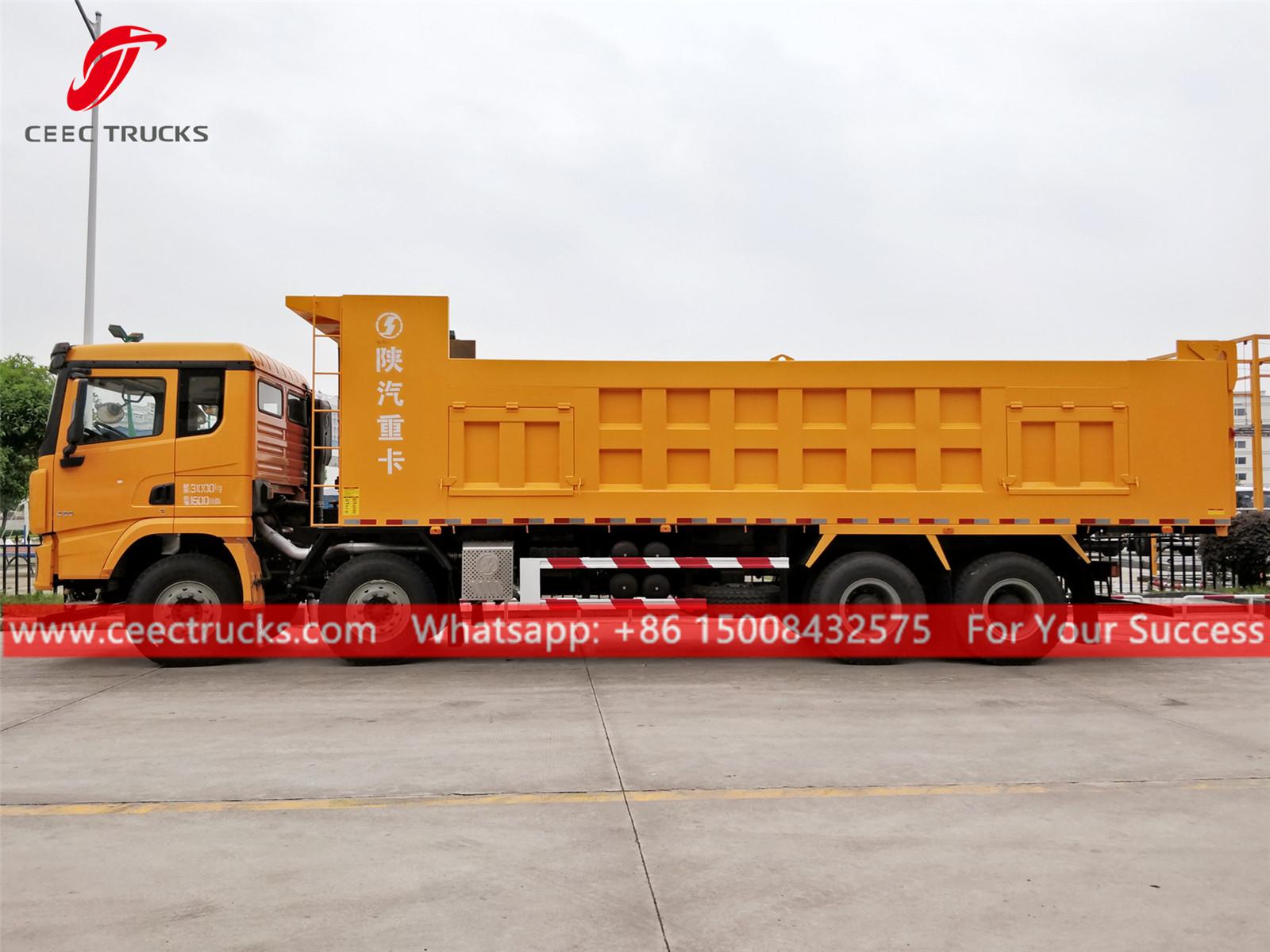Uzbekistán Camión volquete volquete de 60 toneladas, chasis shacman 8x4 LHD, RÁPIDO de 12 turnos Caja de cambios manual, motor diésel WEICHAI 380HP de la famosa marca china, alta Cuerpo volquete de acero resistente, con elevador hidráulico HYVA o doméstico. opcional. Toda la pintura y los logotipos dependen del requisito.