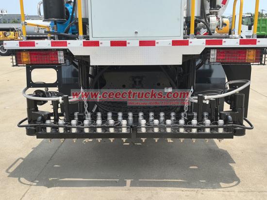 La parte trasera del camión cisterna distribuidor de betún Shacman X3000 está equipada con una varilla de pulverización retráctil de ancho ajustable, equipada con múltiples juegos de boquillas de control de flujo de alta precisión. Permite ajustar con precisión el volumen y la cobertura de pulverización según los requisitos de la construcción (como capa permeable, capa adhesiva y capa de sellado), y lograr un rango de pulverización variable de 0,2 a 3 L/m².