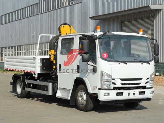 ISUZU NPR cabina doble camión con plegable grúa |